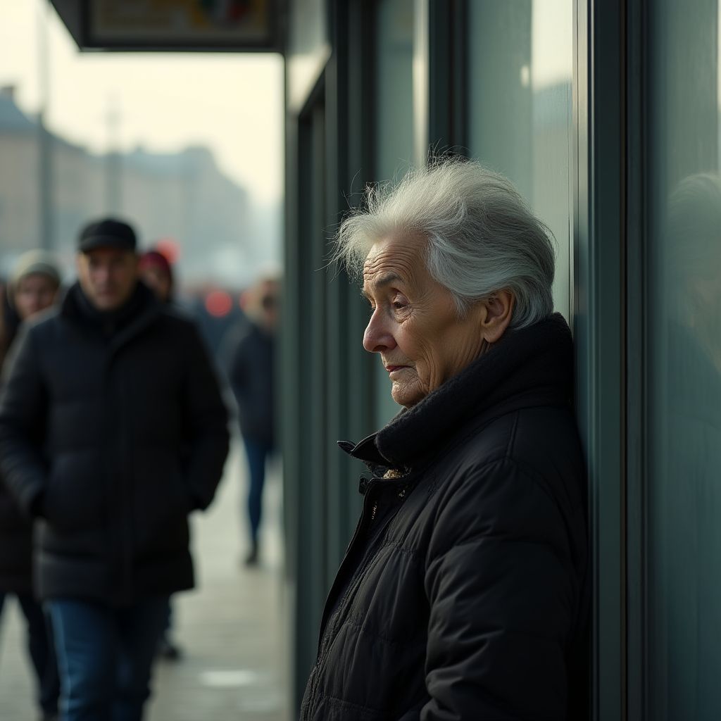 «Опоздаю ли я?» — думала пенсионерка, оглядывая почти пустую улицу и молча поздравляя себя с выдержкой в этой холодной городской пустыне. Её состояние невыносимой грусти было как тяжкий камень, который притягивал к себе только тени одиночества. Никто, казалось, не обращал на неё внимания, каждый был погружён в свой собственный мир. Мимо проносились спешащие люди, лишь мельком бросая взгляды, полные равнодушия и усталости.