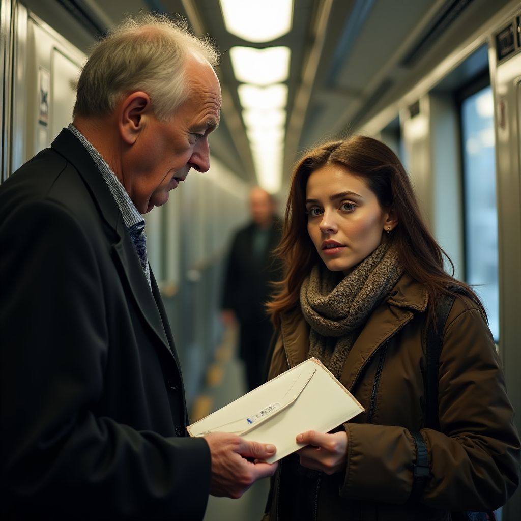 Дверь вагона тихо захлопнулась за стариком, и весь вагон погрузился в почти священную тишину. Женщина, держа в руках тонкий конверт, почувствовала, как ледяные пальцы волнения пробежали по спине. Пассажиры, едва осознавая события, неодобрительно косились в её сторону, словно боясь прикоснуться к неизвестному, скрывающемуся в этом конверте. Сердце незнакомки колотилось в груди, дыхание стало быстрым и прерывистым — казалось, что время растянулось на бесконечность, и каждый миг наполнен тайной.