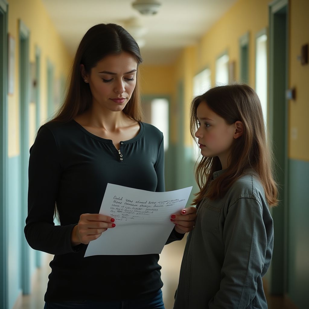 Алексей Сергеевич стоял в коридоре, держа в руках ту самую записку, когда дверь учительской медленно приоткрылась. Тишина вокруг стала ещё плотнее, словно весь мир замер в ожидании. Его пальцы крепче сжали листок, и глаза блестели от слёз, скрываемых гордостью и отчаянием.
