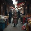 Вечернее небо над старым городом било тусклыми оттенками серого и синего, тоска осени вплеталась в хмурое настроение улицы. Дождь едва накрапывал, играя ритмом по мокрым листьям, поднимая пронзительный аромат сырости и земли, смешанный с едва уловимым запахом кафе через дорогу. Воздух был густым и влажным, и в этом приглушённом свете, у маленького супермаркета на углу, она стояла, прижимая к себе старую сумку, уставшую от времени и тяжестей. Сквозь шум проезжающих машин и редких прохожих просачивались слабые запахи пирогов и свежего хлеба, которые смешивались с холодом вечера.