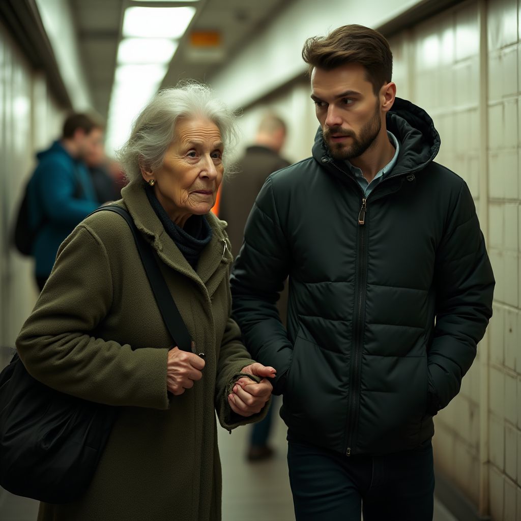 Она думала лишь о одном — купить лекарства и приехать домой до закрытия мелкого продуктового магазинчика по соседству. Было поздно, и метро с каждым часом всё опустевало. Внезапно старушка почувствовала, как вес сумки подскочил, и она чуть не потеряла равновесие. «Ой, тяжело сегодня», — тихо пробормотала она, стараясь не привлекать внимания. «Нужно бы найти помощь, но кто сейчас обратит внимание на старую бабушку?» — думала она, пытаясь подавить слабость, пробегающую по телу.