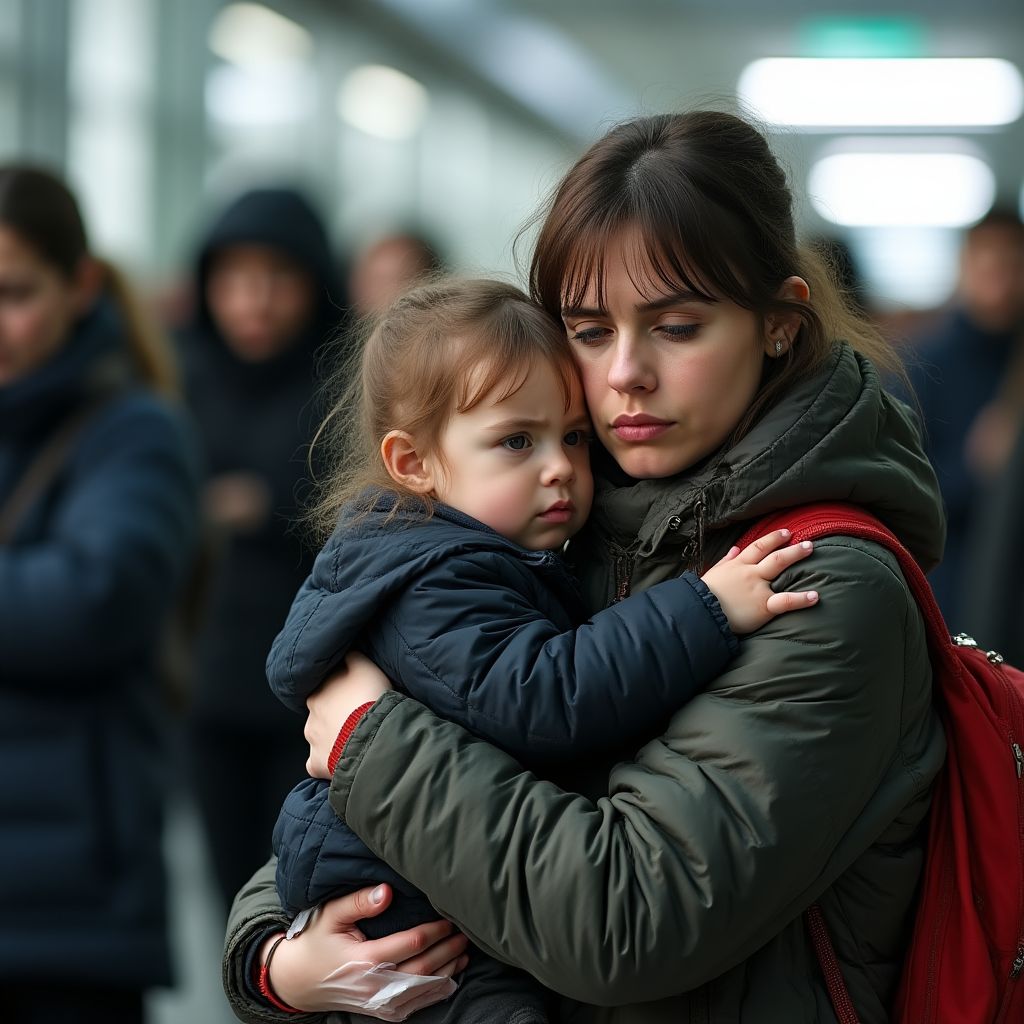 Внутри неё боролись страх и надежда, словно вечный шторм. «Скоро ли нас пропустят?» — думала она, глядя на медленно движущуюся линию. Каждая минута казалась вечностью, каждый шорох — предвестником новой беды. Рядом с ней тихо плакал малыш, укутанный в поношенный плед. Сердце девушки рвалось — она боялась, что не сможет защитить его. Но она понимала: долгий путь был частью их спасения, их новой жизни, которую ещё надо заслужить.