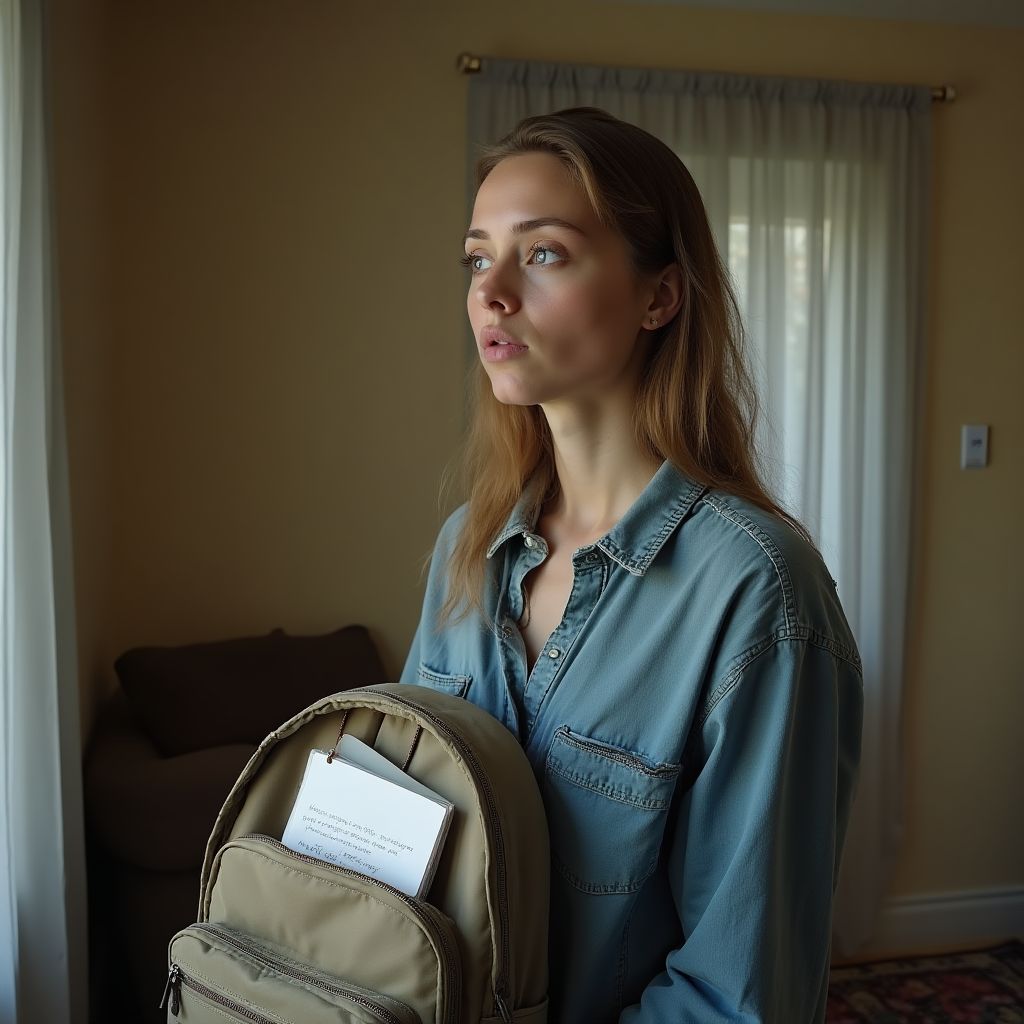 Едва переступив порог подъезда, она повесила рюкзак у двери, чувствуя, как усталость сковывает мышцы. Резкое движение заставило что-то выпасть из рюкзака. «Что это?» — прошептала она, наклоняясь вниз. В тусклом свете коридора белый листок выглядел словно призыв. Она раскрутила ручку, пытаясь понять значение строки: «Мама, я больше не могу молчать…».