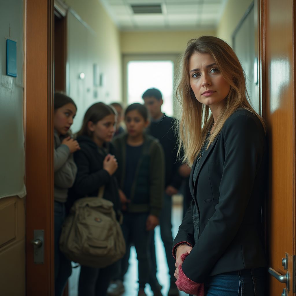 В середине комнаты стояла Марина — учительница начальных классов, чуть выше среднего роста, с тонкими чертами лица и усталыми глазами цвета речного мрака. Её выцветшее пальто и старые туфли выдавали скромное положение. Волосы, собранные в небрежный пучок, добавляли её облику задумчивости и усталой силы. Сегодня ей предстояло закрыть дневные уроки и выйти на перемену, но в душе Марина чувствовала, как тяжесть долгого рабочего дня давит на плечи, смешиваясь с холодной тревогой.