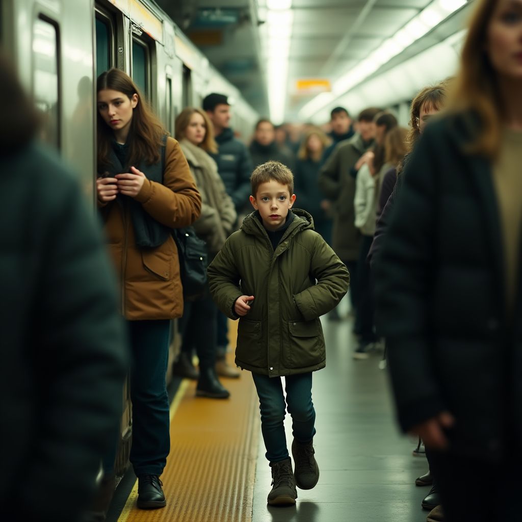 «Почему вы так со мной?» — тихо пробормотал он, отчаянно сжимая кулаки. «Я просто хочу добраться домой. Мама сказала ждать меня.» Один из рабочих нахмурился и пробормотал: «Дома? Для таких, как ты, здесь нет места. Иди обратно в трущобы, пока я тебя не выгнал.» Звук затворяющихся дверей метро прошёл как знак, разделяющий обещание надежды и реальность отвержения. Сердце мальчика сжалось, но взгляд его упал снова на девушку в красном платке — она словно ждала его, призывая на что-то большее, чем просто бегство.