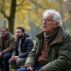 Мысли крутились у мужчины в голове: «Почему именно сегодня я здесь? Что заставляет меня смотреть в сторону этого старика, сидящего с опущенной головой и дрожащим телом? Если бы не работа и важные встречи, он бы давно был в другом месте — без дома, без надежды. Нет, нельзя пройти мимо. Я должен понять его историю». Чувство ответственности и сочувствия медленно нарастало, словно тлеющий огонёк в сердце, который готов был разгореться в пламя.