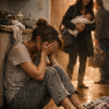 Около них несколько прохожих замерли, глядя на странный диалог. Женщина с ребёнком тихо прошептала: «Неужели это спаситель? Но почему теперь он здесь, среди нас, в таком состоянии?»
