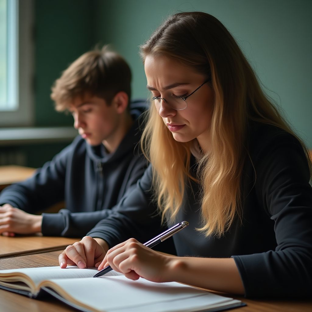 Комната окутала тишина гнетущая и тяжелая, словно свинцовое одеяло. Елена Викторовна смотрела на закрытый дневник, сердце дрожало и билось словно птица в клетке: каждый вздох был острым и щемящим. Она осмелилась снова открыть его, дрожащими пальцами медленно листая страницы, словно опасаясь найти там что-то невозможное к восприятию. В углу класса мелькали тени, соседние ученики наблюдали с заторможенными глазами. «Что же скрывается на этих страницах?» — спросила она у себя.