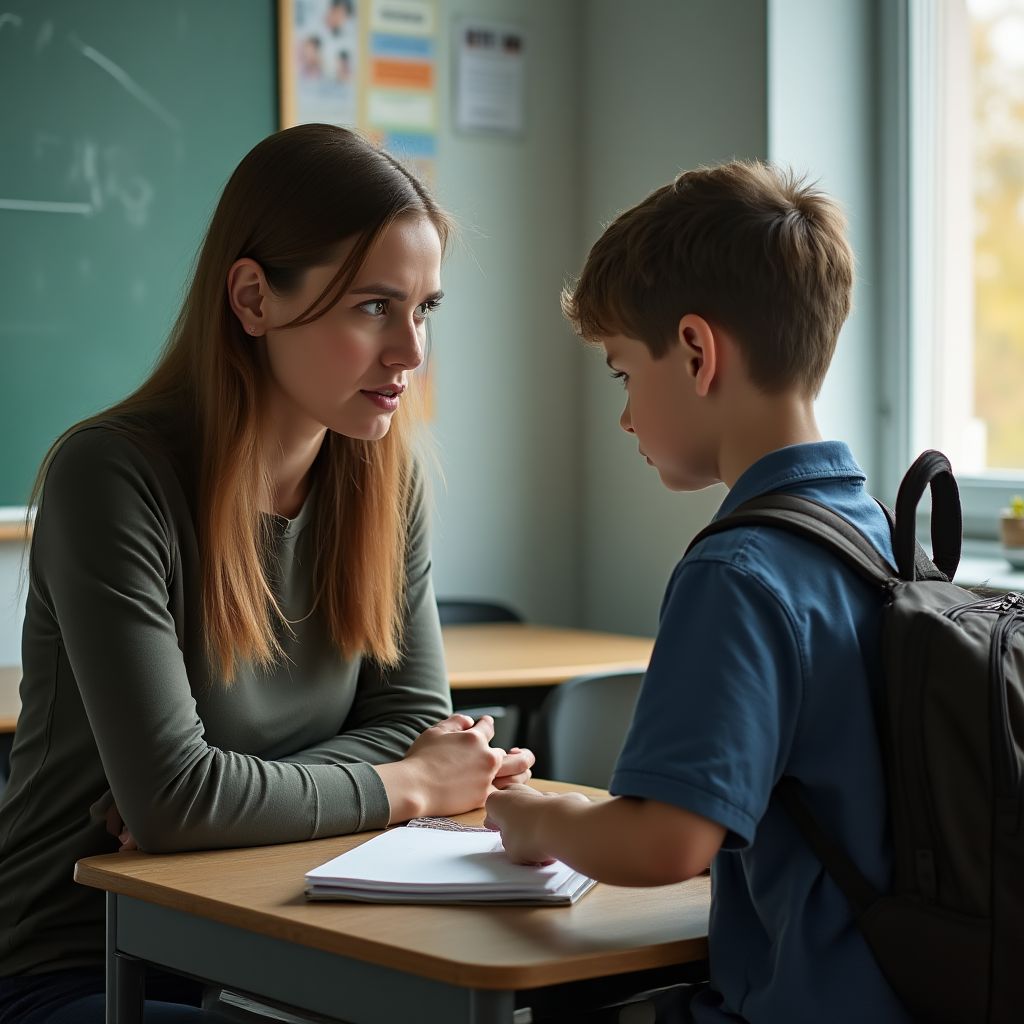 «Ничего, ничего», — тихо ответил мальчик, словно надеясь, что слова растворятся в воздухе. Но учительница заметила, как его руки сжались в кулаки и как у него по лицу пробежала тень страха и стыда. В классе повисла напряжённая тишина, прерываемая лишь неуверенным шепотом между рядом сидящими детьми.