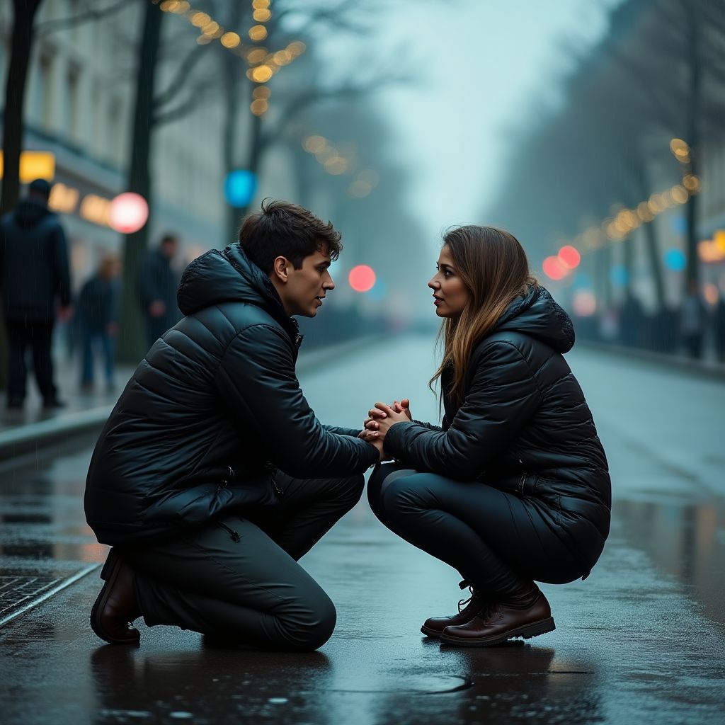 «Я просто жду её… Надеюсь, она узнает меня,» — ответил парень, пытаясь сохранить спокойствие в голосе, но его руки слегка дрожали. «Ты что, слепой что ли? Она давно ушла от таких, как ты,» — грубо ответил мужчина в грязной куртке. Сердце парня екнуло от боли, но он не мог позволить себе сдаться. «Я нашёл тебя, и теперь больше никогда не отпущу,» — тихо произнёс он, как будто обращаясь не к прохожим, а к невидимому образу, стоявшему напротив.