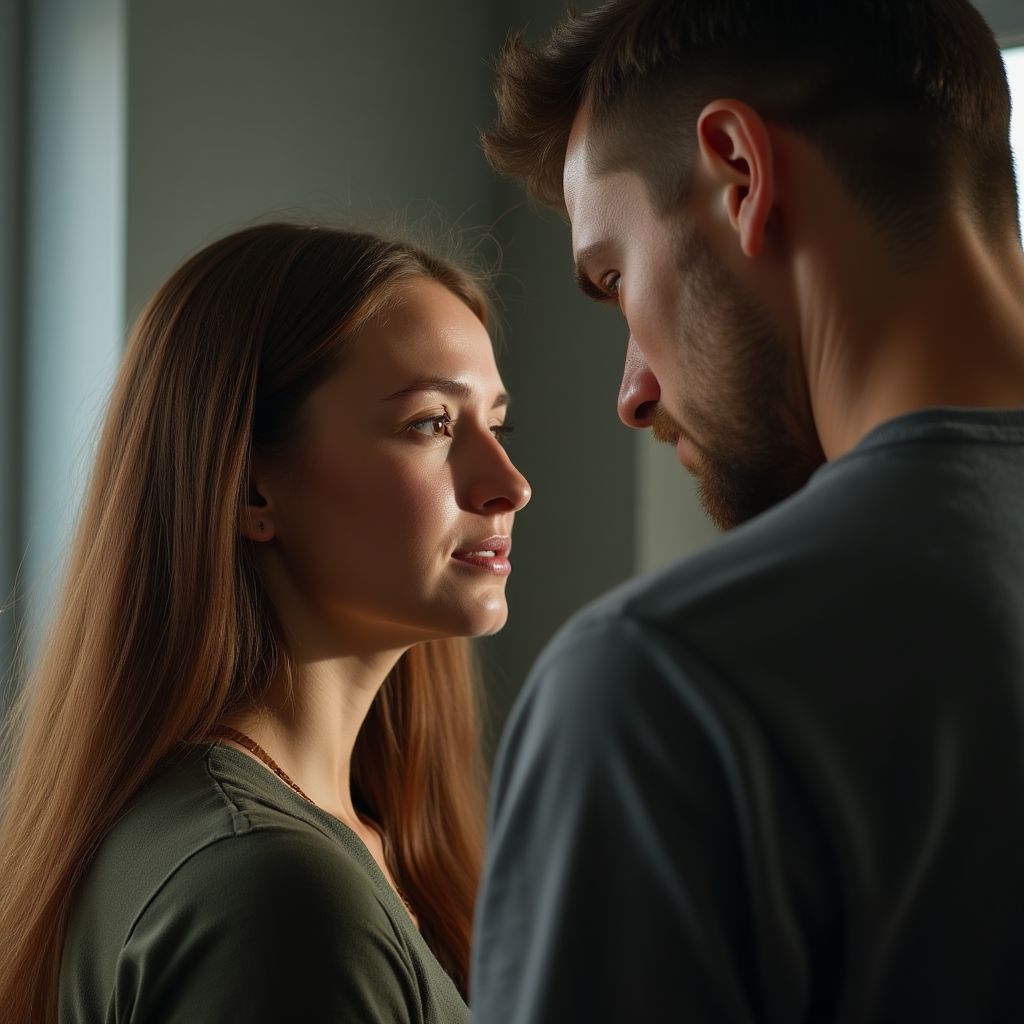 — «Это она?» — спросил мужчина, не сводя глаз с лица женщины. — «Да, это она,» — ответил голос, наполненный трепетом и гордостью. Мужчина сжался, пытаясь сдержать эмоции.