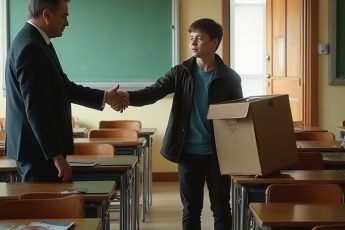В пасмурный осенний день, когда серое небо сливалось с мокрым асфальтом школьного двора, лёгкий холодный
