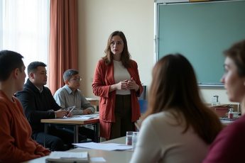 В небольшой, типично затхлой классе средней школы вечером, когда за окном уже сгущались сумерки, стояла