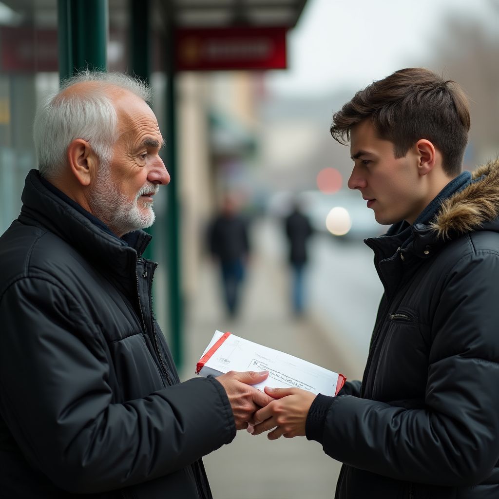 Мы ждали автобус, который давно задерживался. Старик молчал, коснулся моего плеча и протянул конверт — плотный, с потёртыми краями, без надписей. Сомнение свалилось на меня как груз: зачем? Кто он? Что внутри? Сердце застучало быстрее, пальцы освободились от тумана сомнений и осторожно взяли конверт. Из глубины души зародилась лёгкая дрожь — то ли от холода, то ли от предчувствия перемен.