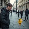 Внутри Алексея играла тревога — сегодняшняя выручка казалась бесконечно далёкой целью. День начинался так же, как и все предыдущие: постоянная борьба за крохотные деньги, взгляд на прохожих с надеждой и страхом одновременно. «Опять хаос вокруг, а я — словно невидимка тут», — думал он, ощущая холод, пронизывающий до костей. Ему не терпелось закончить рабочий день, но что-то заставило задержаться в тени прилавка, где лёгкий ветер колыхал разорванный платок.