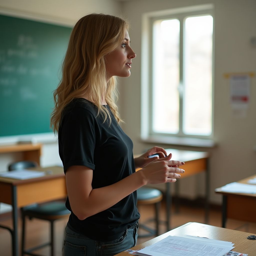 Анна, невысокая женщина лет сорока с глубоко посаженными зелёными глазами и усталым взглядом, медленно перешагнула порог. Её светло-серая юбка и простая блузка явно контрастировали с обветренными стенами и облупленными партами. Волосы, собранные в аккуратный пучок, отчего-то казались тусклыми, несмотря на поток света из окна. Анна учительница, вернувшаяся после длительного отпуска — время, которое должно было заполнить пустоту и усталость.