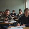 Анна стояла у выхода из школы, её пальцы тревожно сжимали старенький кожаный кошелек, синее пальто с едва заметными потертостями не скрывало усталости и множества пережитых трудностей. Её волосы, заплетённые в неприкрытую косу, немного взъерошены ветром, а глаза — ярко-зеленые, но слегка потускневшие от долгих бессонных ночей. В её взгляде читалась постоянная бдительность и тревога — она надеялась увидеть своего сына в идеальном порядке, но в глубине души уже ощущала надвигающуюся бурю.