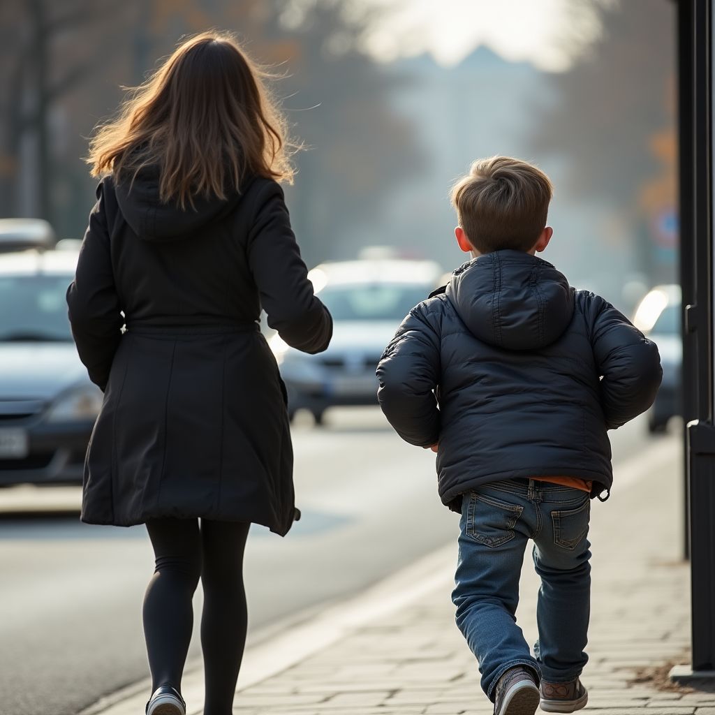 Внутри мальчика боролись сомнения и настойчивость. «Не могу я просто уйти. Она должна вернуться. Если не сейчас, то когда?» — думал он, сжимая кулаки, словно пытаясь удержать воздух внутри себя. Он наконец сделал шаг к проезжающей машине, сердце колотилось от предвкушения и ужаса одновременно.