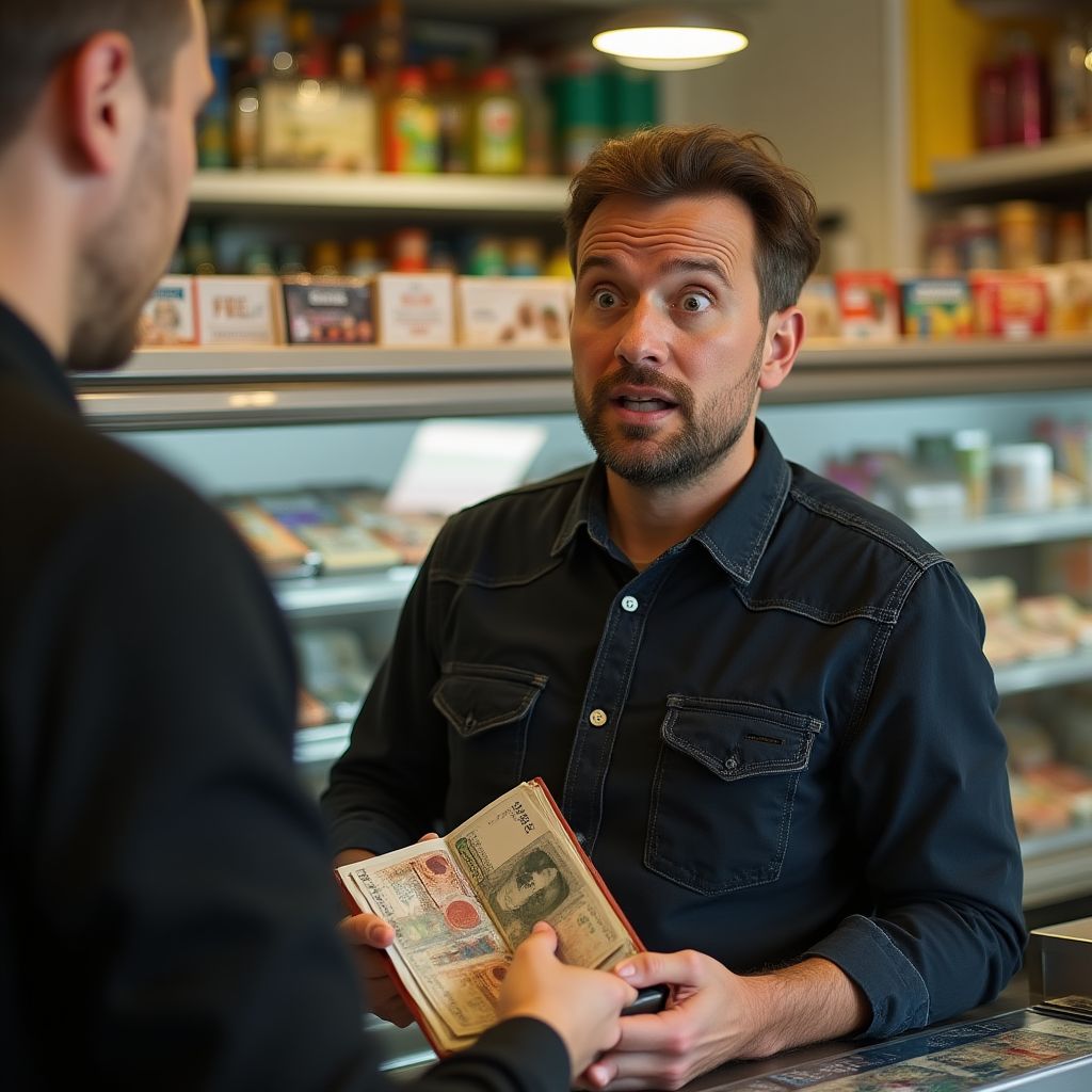 Мужчина стоял посреди магазина, держа в руках банкноты, покрытые таинственными надписями. Его дыхание стало прерывистым, а в глазах отразилась смесь страха и надежды. Вокруг сгущалась тишина: даже поскрип половиц казался оглушительным. «Кто мог оставить эти слова?» — повторял он в голове. Внезапно возле него подошёл старик с опрятным, но скромным видом, и сказал тихим, но уверенным голосом: «Это послание для тебя, пойми — люди не всегда такие, какими кажутся».