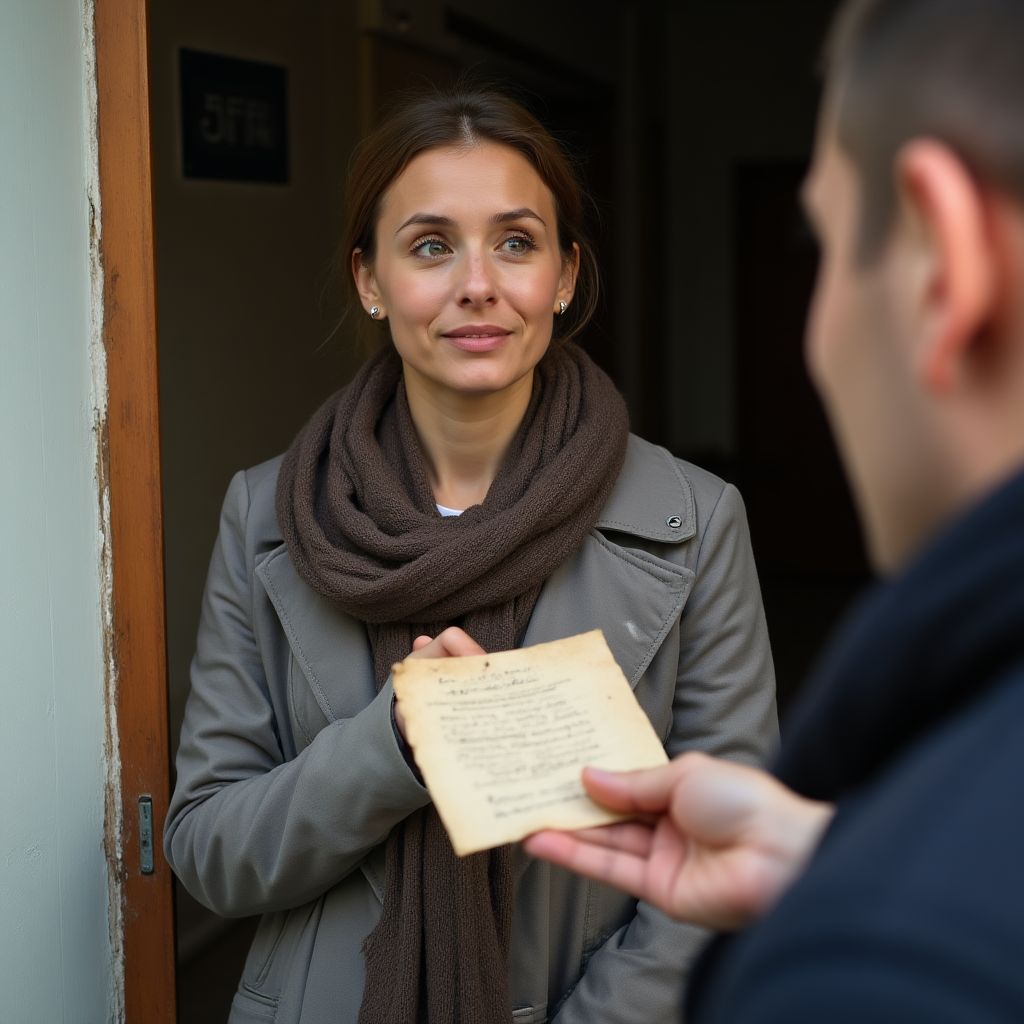 В эту тихую минуту к ней подошёл незнакомец — высокий мужчина в поношенной куртке. Его взгляд был тяжёлым, потерянным, словно он носил с собой груз невысказанных тайн. «Извините, вы… это для вас», — сказал он, протягивая потрёпанную, немного пожелтевшую записку с неразборчивым почерком. Женщина мелькнула взглядом на записку, сердце вдруг начало колотиться сильнее. «Что это может значить?» — прошептала она, дрожа всем телом. Рядом кто-то кашлянул, и казалось, что время замедлилось.
