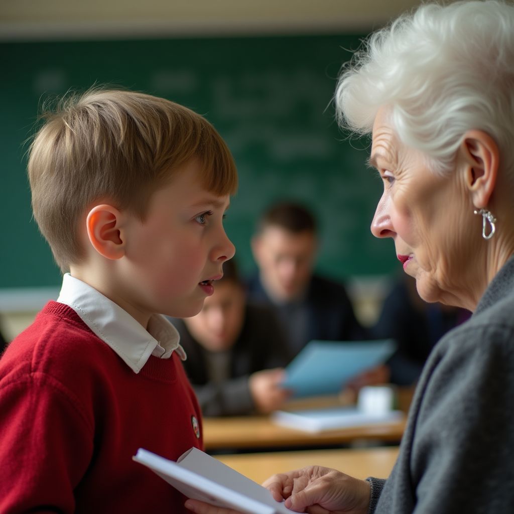 — «Ты должен был рассказать это раньше!» — раздался голос тёплый и строгий из зала. Это была учительница, которая всю жизнь боролась за права детей из бедных семей. — «Но я горжусь тобой, что ты смеешься говорить правду.» — мальчик кивнул и сдержал слёзы.