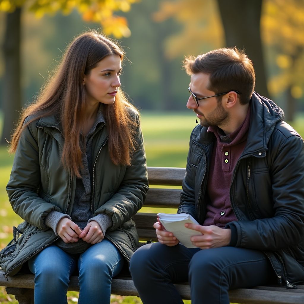 Она сидела недалеко, омрачённая мыслью о своём маленьком ребёнке и разбежавшихся делах. Молодая женщина со светлыми, слегка взъерошенными волосами и усталыми голубыми глазами, одетая в простую, но аккуратную куртку и изношенные кроссовки. Её плечи нежно касались старой сумки — символа неуверенности и скромных возможностей. Треск проходящих поездов создавал ощущение постоянного движения, в котором она казалась такой неустойчивой.
