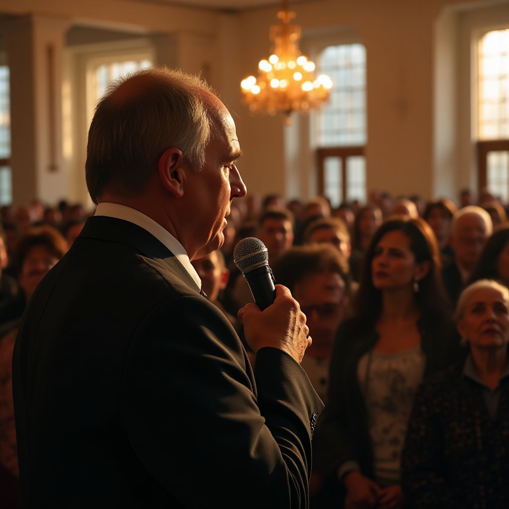 «Постойте, подождите», — голос его прорезал гулкую тишину. Несколько голов медленно повернулись к нему. «Я должен сказать правду, которая многое объяснит, — начал он, и в зале повисло напряжённое молчание. — Мы все здесь собрались, но никто не знает, что произошло на самом деле».