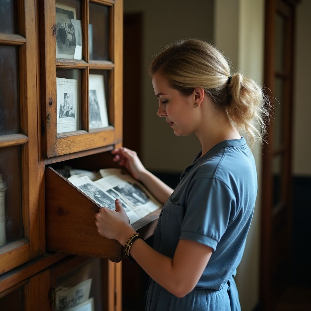 «Я должна узнать правду,» — прошептала она себе, зажмурившись и глубоко вздохнув. Мысли крутились в голове, как ураган: «Что здесь хранится? Почему эти слёзы и надежды были спрятаны? Может быть, это истории тех, кто был забыт и унижен? Я не могу просто так уйти.» Взявшись за содержимое ящика, она решила привести документы в порядок и узнать, кому они принадлежат. Руки перестали дрожать — на смену страху пришла решимость. Её сердце горело желанием восстановить справедливость.