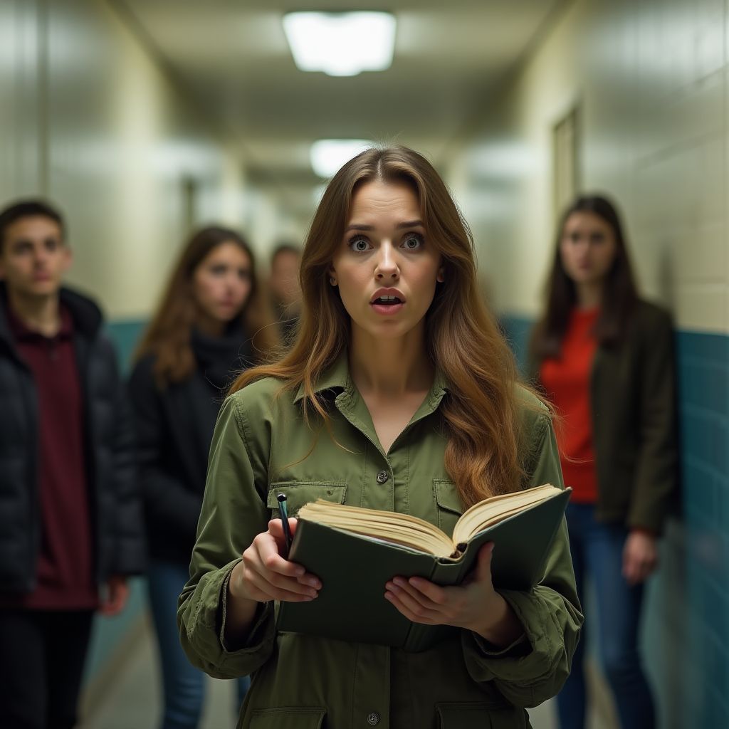 Сердце застучало чаще, дыхание сбилось, а руки покрылись лёгкой дрожью. Она открыла дневник — страницы были пёстрыми от разных почерков, в них переплетались записи подростков с их тайнами и страхами. Неожиданно она услышала за спиной шёпоты и глухие взгляды учеников из соседнего класса.