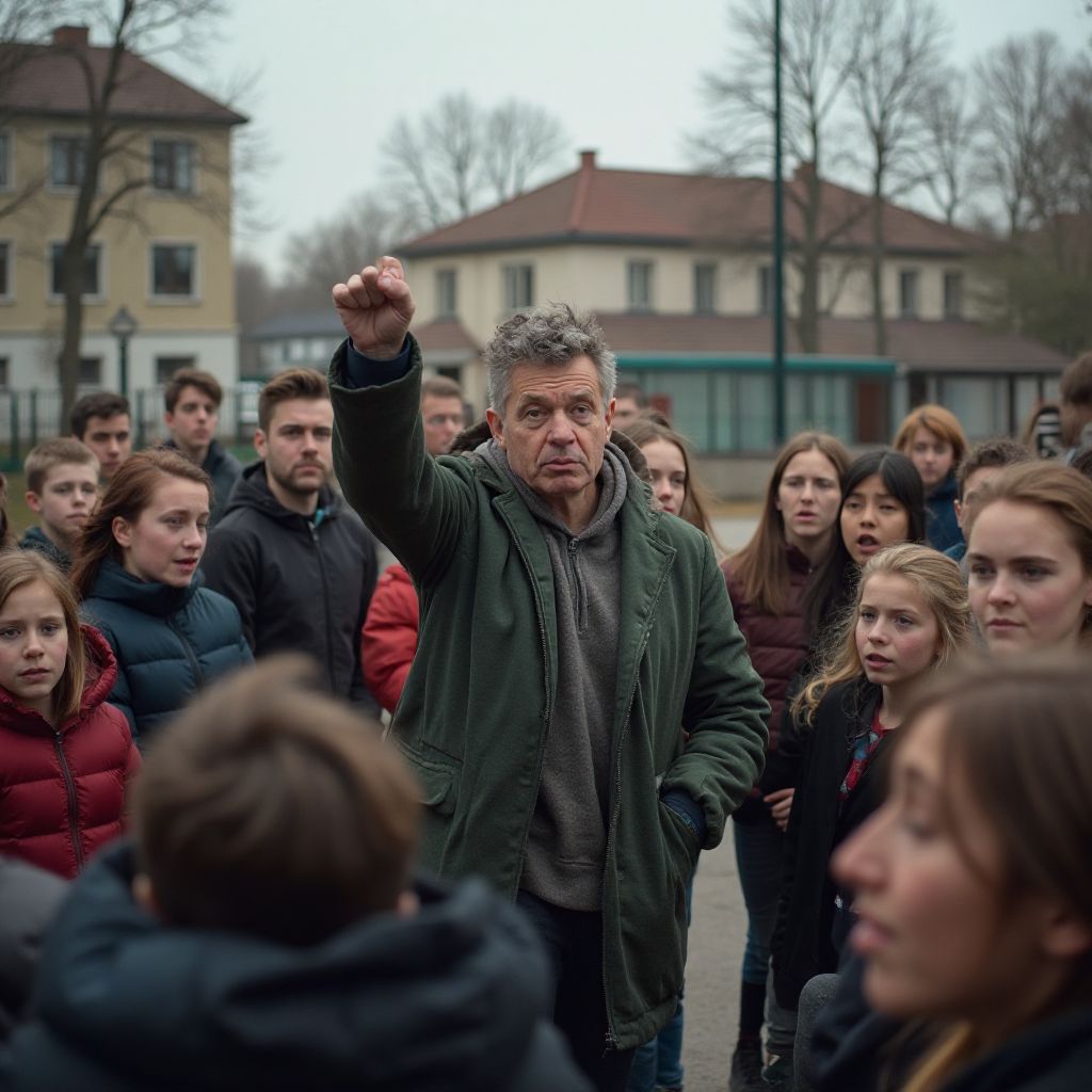 Немного в стороне наблюдала учительница Марина Ивановна, её глаза сузились, а руки сжались в кулаки. Она уже устала видеть, как дети делятся на «своих» и «чужих» по родителям и деньгам. Внезапно она подняла голос, резкий и сильный, который заставил всех остановиться: «Довольно! Тишина сейчас!» Звук её голоса повис в воздухе, и весь двор словно замер.