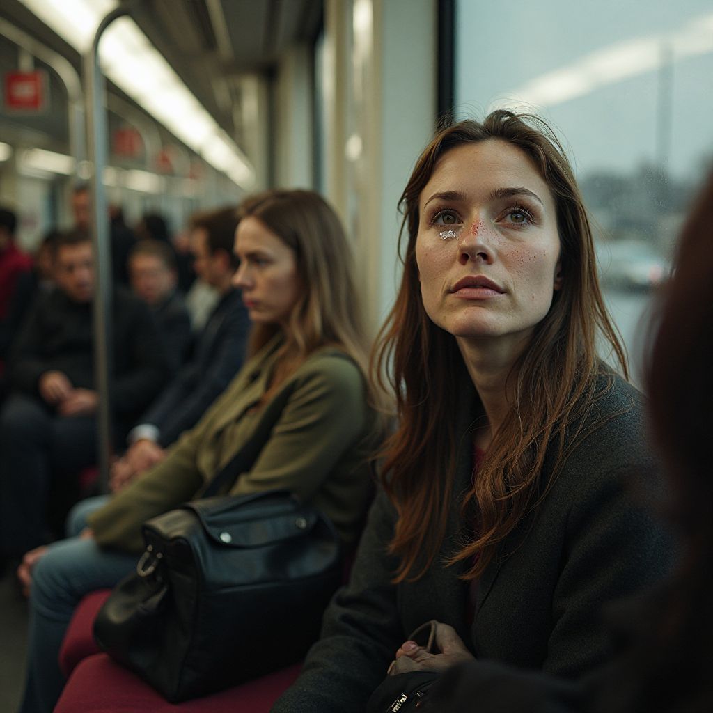 «Ты в порядке?» — тихо спросил он, но женщина лишь качнула головой, не в силах ответить. Раздался шёпот от пожилой женщины напротив: «В наше время каждая такая слеза — груз тяжелых судеб». «Может, просто семейные проблемы», — услышал он от другого пассажира. Ещё один шептал: «Наверное, без денег, бедная», и сквозь их слова просвечивала пренебрежительность и усталость жизни.