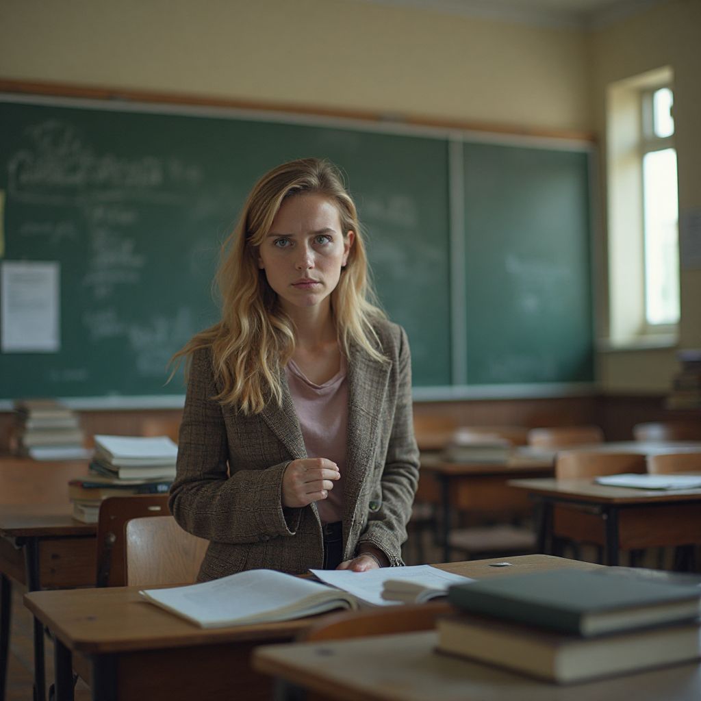 Елена, высокая женщина с усталыми глазами цвета тёмного леса, стояла у школьного порога. Её куртка, с заплатками на локтях, немного казалась слишком большой, словно длилась жизнь её бедности. Тонкие руки крепко сжимали обрывок записи из детского дневника, исписанный неразборчивым почерком. Её походка была неуверенной, голова слегка наклонена, на лбу проступали морщины тревоги. Она была учителем начальных классов, тем, кому довелось узнать слишком много — и тихо переживать за каждого своего ученика.