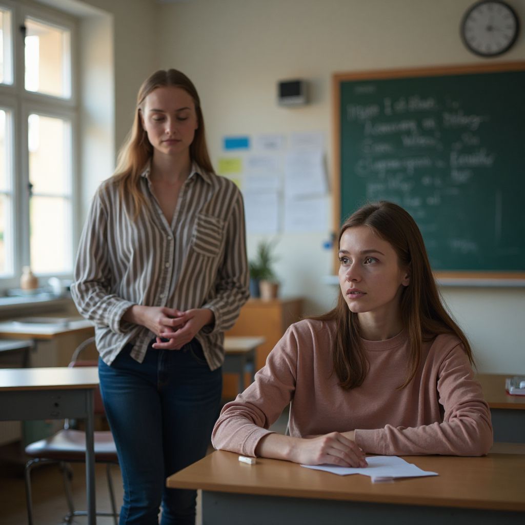 Анна подняла взгляд и тихо ответила: «Я боялась… проще было уйти, чем столкнуться с тем, что меня никто не хочет видеть здесь, кроме вас». Её голос ломался, и Михаил Петрович почувствовал, как сердце сжимается в ответ на её признание. «Я хотела оставить всё, но боялась, что навсегда потеряю школьную семью», — тихо сказала она, смахивая слёзы.