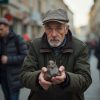 Александр был молод, но уже устал от бесконечных дежурств в переполненных больницах. Его рост чуть выше среднего, глаза тёмно-зелёные, полные усталой решимости. Одет он был скромно — тёмное пальто, слегка поношенные ботинки и белая рубашка с краем запятой — выглядело это простовато на фоне пёстрой толпы прохожих, спешивших мимо. Его осанка сохраняла достоинство, несмотря на усталость, а лицо, несколько поблёскивая от пота, отражало смесь тревоги и надежды. Александр впервые решил помочь тем, кем общество постоянно пренебрегало, и поэтому его присутствие здесь было словно луч света среди серой безнадёжности.
