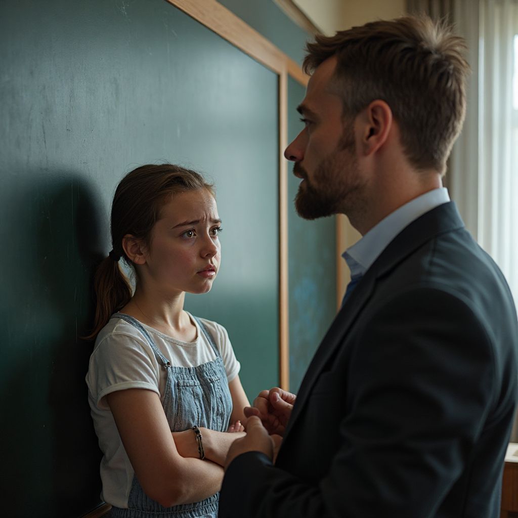 В классе повисла тяжёлая тишина, наполненная мыслями и эмоциями, которые лихорадили сердца. В этот момент дверь открылась, и в класс вошли школьный психолог и директор, чтобы поддержать Дашу и начать разговор о справедливости и поддержке детей из сложных семей.