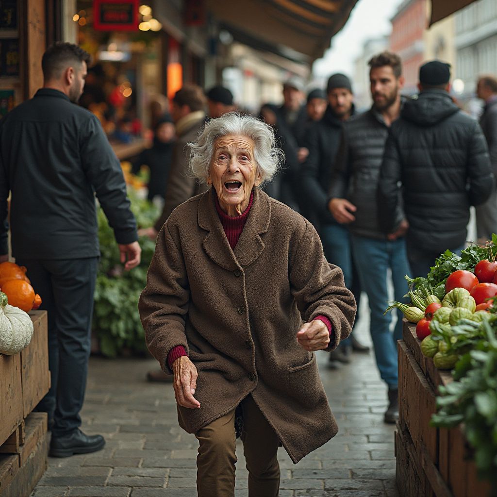 На одном из таких прилавков стояла старушка с дрожащими руками и бледным, но живым лицом, обрамлённым пушистыми седыми локонами. Её глаза, ярко-синие и задумчивые, выдавали годы лишений и надежд. В одежде — поношенное, но аккуратное пальто и изношенные ботинки — читался весь её непростой жизненный путь. Она продавала овощи и фрукты, привезённые с огорода на окраине, и в каждом её движении ощущалась усталость, но при этом жажда сохранить хоть каплю собственного достоинства. Прохожие редко обращали на неё внимание, спеша в суете большого города.