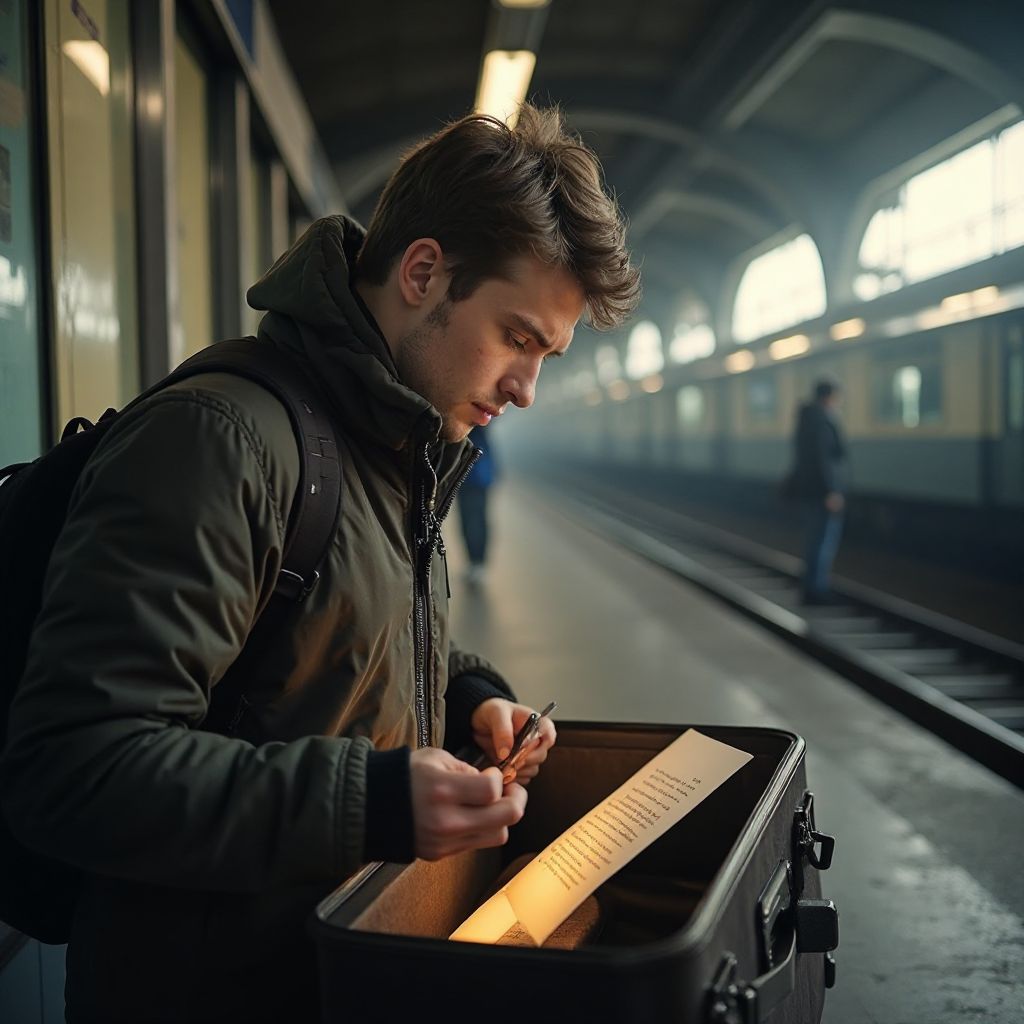 Парень медленно вскрыл письмо, словно боясь разрушить ту нить правды, что держала его на грани отчаяния и надежды. Все вокруг словно затаили дыхание — звуки платформы притихли, разгоняя привычный городской шум и оставляя место только для шёпота ветра и трепета сердец. Его руки, дрожащие от волнения, развернули пожелтевший лист бумаги, на котором мелкими, но аккуратными буквами была написана страшная правда.
