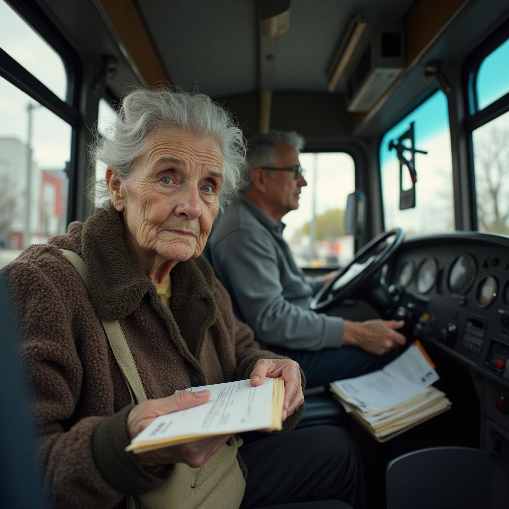 Автобус стоял неподвижно, оглушённый внезапной остановкой и напряжённым молчанием в салоне. Старушка сжалa письма крепче, чувствуя, как пальцы её подрагивают от волнения и страха. Водитель, хлопнув дверью, приблизился к ней с серьёзным лицом.