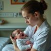 Анна, молодая женщина в простом потёртом пальто, опустилась на стул у кровати новорождённого сына. Её тёмные глаза блестели усталостью и тревогой, а бледное лицо оттеняла густая коса, небрежно сброшенная на плечо. В пальцах она сжимала сложенную вдвое тряпицу — подарок от соседки по коммуналке — словно последний якорь в этом незнакомом мире. В её движениях чувствовалась усталость сироты, выросшей в ветхом районе, вечно недоедающей и недооценённой в этом городе. Казалось, что даже стены палаты лепились к ней с равнодушием, не давая ни тепла, ни надежды.