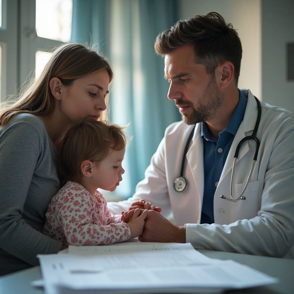 «Вы должны знать, что несмотря на все сложности, этот ребёнок особенный. Его болезнь — не приговор, а шанс изменить что-то большее. Я сам пережил многое, и знаю, как важно бороться. Есть возможность получить помощь от фонда, который поддерживает семьи, подобные вашей», — продолжал врач, отвернувшись, чтобы скрыть искры слёз в глазах. Шёпоты других пациентов и тихий стук часов стали ненастоящими. В этот момент всё в комнате, казалось, замерло — как будто время остановилось, выдыхая надежду и боль одновременно.