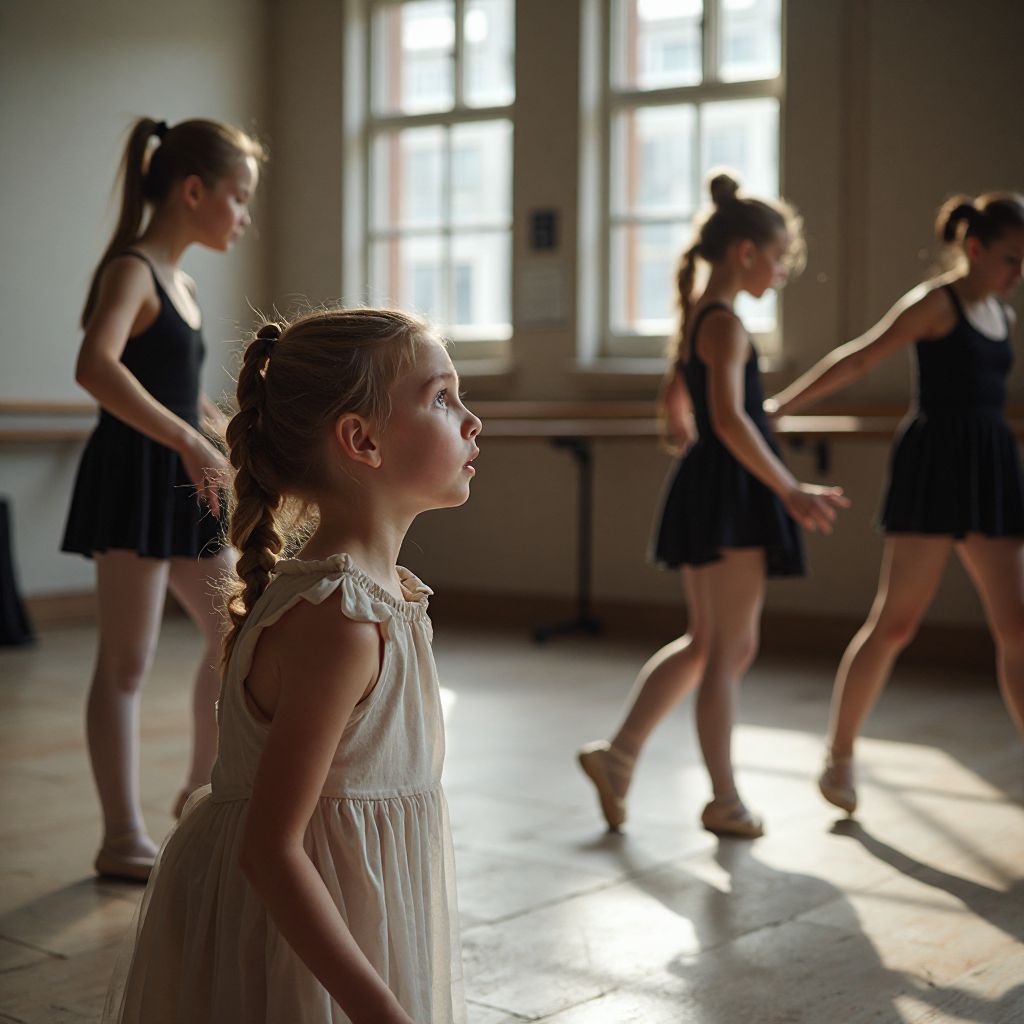 Свет зала падал мягкой волной на узкую, хрупкую фигуру девочки. Её глаза цвета мокрого асфальта блестели от волнения и надежды, а румяна на щеках подчеркивали её юность и простоту. Одежда была скромной – старенькое пальто с затертыми локтями и шерстяной шарф, свалявшийся в узелок. Рост невысокий, слегка сутулится, словно пытаясь спрятаться от мира, что казался слишком большим и чужим. Девочка вздыхала, пытаясь не выдать внутреннюю дрожь – первый поход на балет, мечту, которую она лелеяла так долго, — но что-то подсказывало, что этот вечер будет иным.