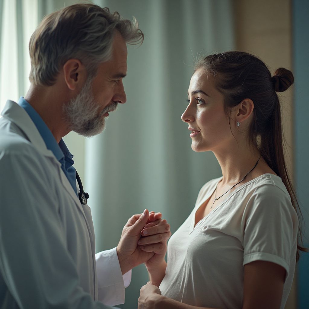 Сердце девушки билось с такой силой, что казалось, вот-вот вырвется из груди. Руки врача крепко сжимали её ладонь, излучая прочную опору и тепло. Вокруг царила почти святая тишина — каждый присутствующий ощущал, что сейчас произойдёт нечто судьбоносное. Глаза врача светились не только профессионализмом, но и глубокой человечностью. «Вы должны знать правду,» — сказал он тихо, будто боясь нарушить хрупкое спокойствие.