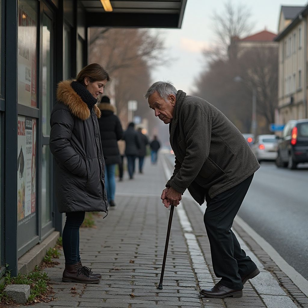 Подойдя к мужчине, она мягко взяла его руку и сказала: «Я сделаю всё, чтобы тебя поддержать. Ты не один». Его глаза загорелись нежностью и благодарностью. «Спасибо», — прошептал он, — «ты самая большая справедливость в моей жизни». В этот момент на остановке возникла атмосфера преображения и надежды.
