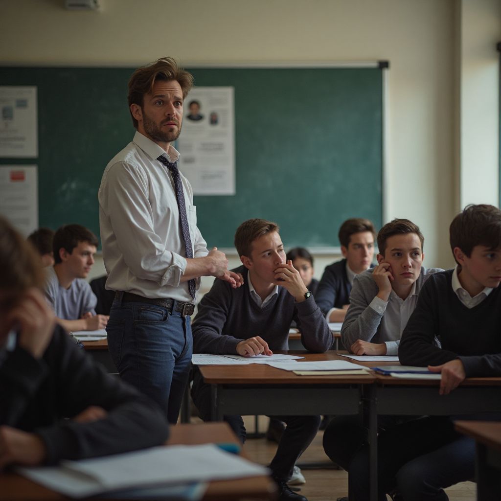 — «Давайте успокоимся», — начал он, перебивая напряжённость. — «Я всегда старался помогать всем ученикам, особенно тем, кто нуждается в поддержке. Моя задача — дать им шанс, а не унизить».