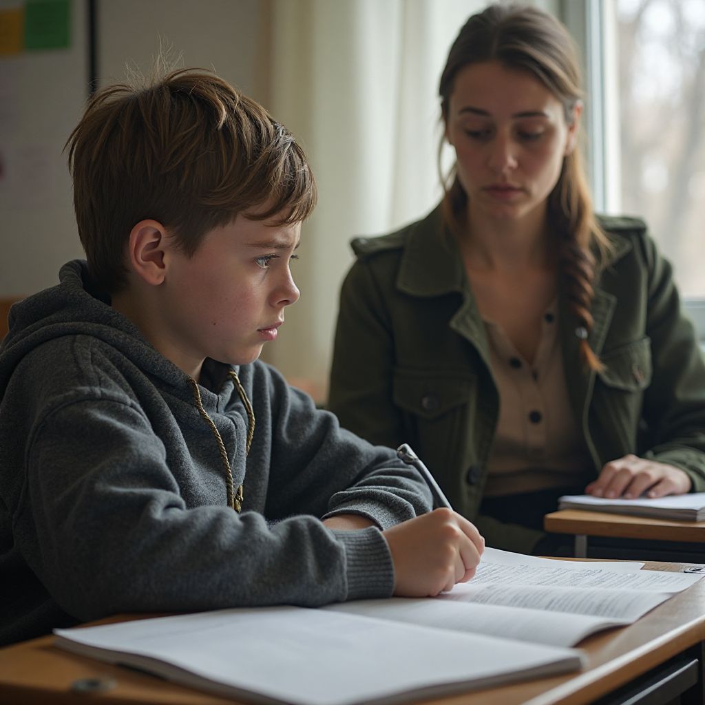 — Иван, — начала учительница, аккуратно положив руку на его плечо, — я знаю, твоя ситуация сложнее, чем кажется. — Она посмотрела вокруг, чтобы убедиться, что никто не слушает. — Ты не просто забыл домашнее задание. Ты живёшь в мире, где справедливость не всегда на стороне слабых.