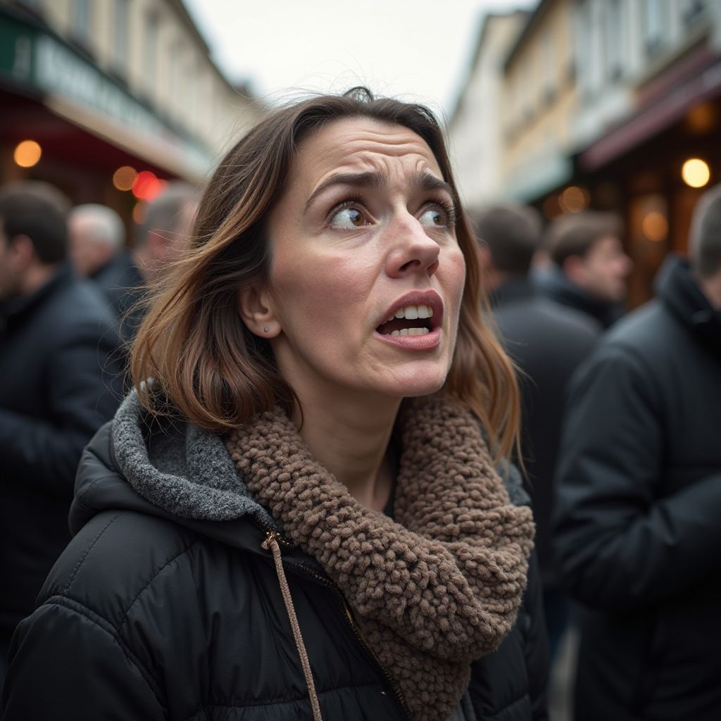 Сердце колотилось бешено, дыхание сбилось, ладони вспотели, а ноги немели от шока. Она хотела заговорить, но слова застряли в горле. «Что же будет дальше?» — мысли метались в её голове, пахнущие уксусом напряжения и тревоги. Её пальцы на сумке сжались, будто там был не просто пакет с продуктами, а ключ к разгадке судьбы.