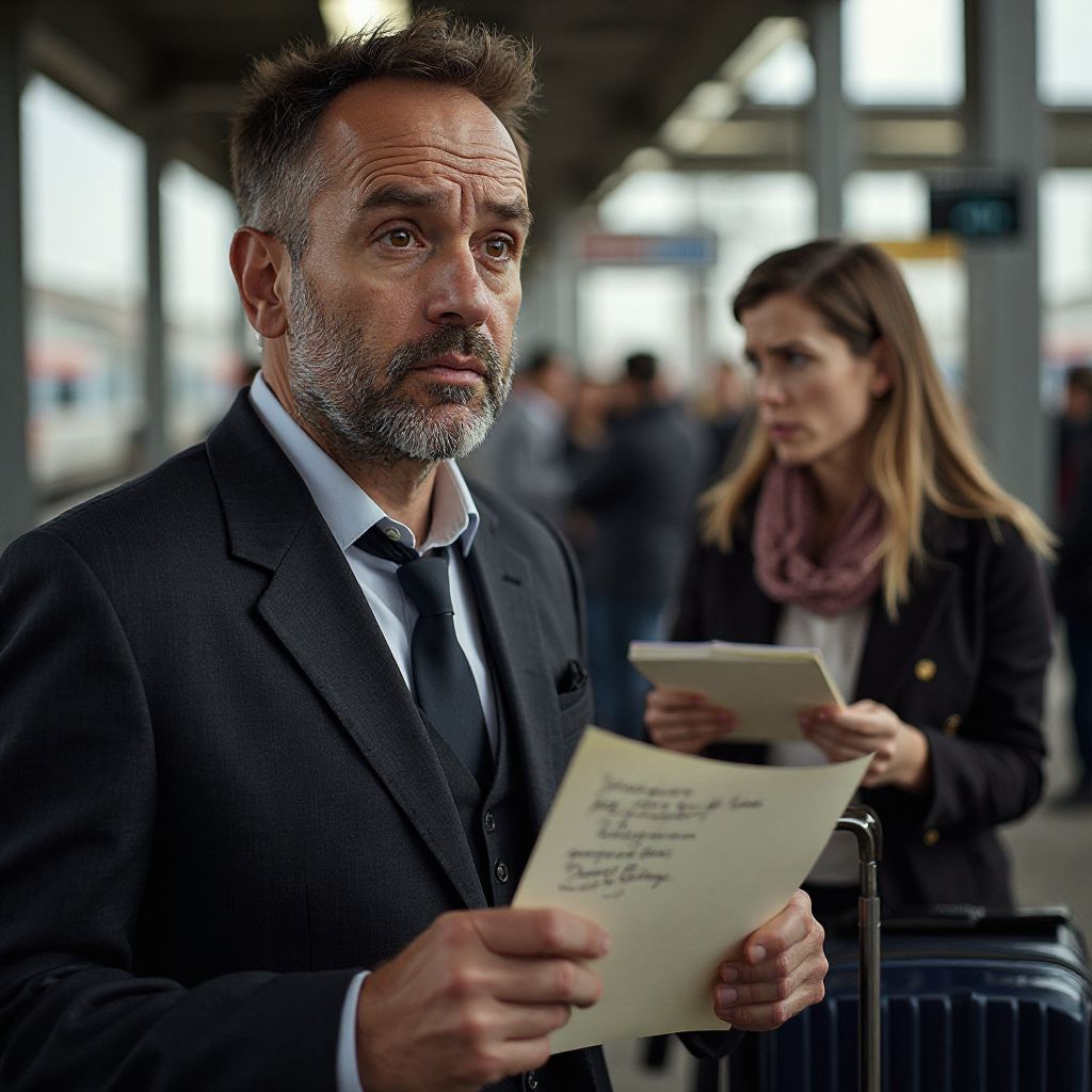 Неожиданно его взгляд упал на покинутый чемодан, брошенный у края платформы, на котором лежала пожелтевшая от времени записка. «Что это?» — осторожно произнёс он вслух, глядя по сторонам. Вокруг уже никого не было, тишина сгущалась, только редкие шаги на другой стороне вокзала гулко отзывались по пустым коридорам. Застыл в нерешительности, он протянул руку — сердце мгновенно начало биться чаще, словно предчувствуя, что эта находка изменит всё.