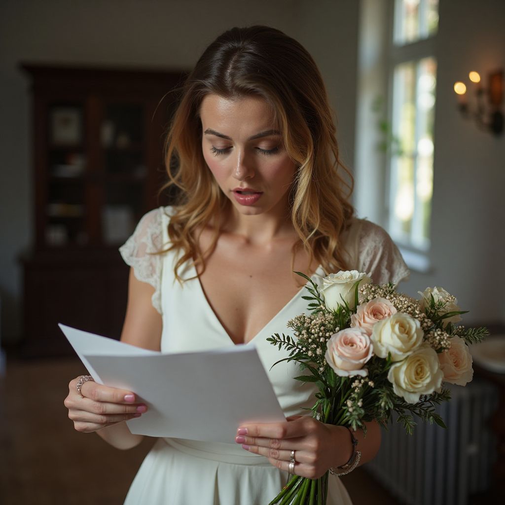 „Дорогая Анна,“ — начиналось письмо. Внутри скрывалась правда, которую никто не должен был знать. Вокруг звучали приглушённые голоса гостей, играла спокойная музыка, но в комнате натягивалось невидимое напряжение, словно паутина, что вот-вот обречёт всё на молчание. Шёпоты в коридоре вдруг стихли, взгляды, казалось, стали тяжёлым грузом на плечах. „Что это значит? Почему именно сейчас?“ — думала Анна, когда в душе поднялся холод, а время будто остановилось.