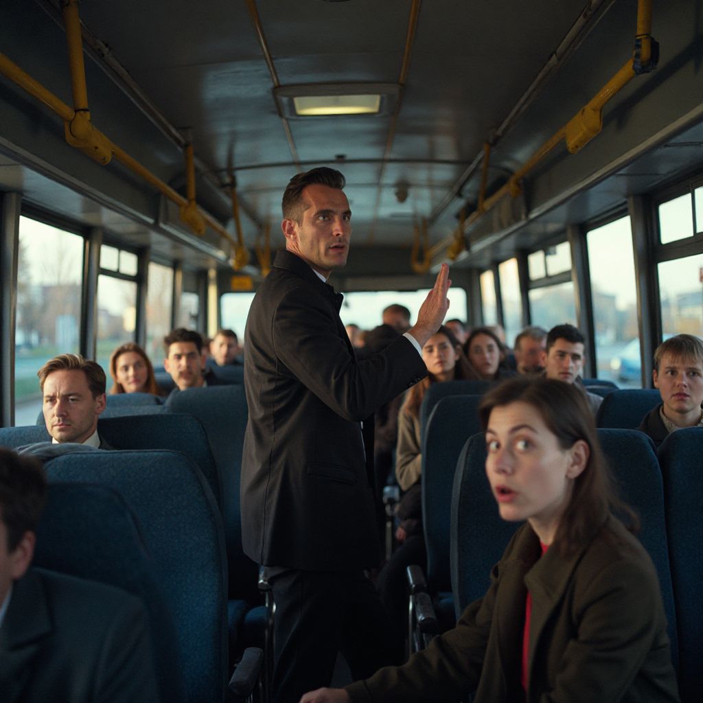 «Это … мы должны сообщить об этом!» — раздался взволнованный голос пожилого мужчины, который стоял возле двери. Другой пассажир, женщина с ребёнком на руках, сжала плечи и тихо промолвила: «Неужели кто-то решил спрятать здесь что-то опасное?». Недовольство и страх начали распространяться по автобусу, как вирус, поражая каждое сердце. Молодой парень усмехнулся и сказал: «А может, это просто шутка? Но я не уверен — в нашей жизни уже слишком много боли и лжи».