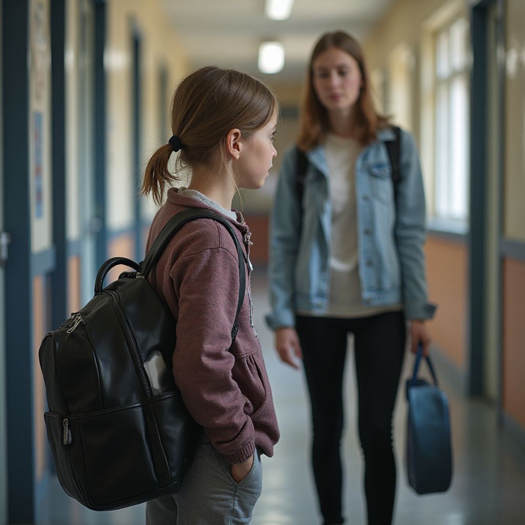 Осенний день медленно полз, словно вялая река, в обрамлении серого неба и тяжелого тумана. Вокруг школы, той самой, где дети каждый день учатся и мечтают, запах мокрого асфальта смешивался с резким ароматом свежей краски на стенах здания. Звенел звонок, пробуждая в душе учащихся обычный суетливый ритм. Холодный ветер тихо играл с пожелтевшими листьями, что устилали тротуар возле входа, а слышимый вдали гул автобусов и пешеходные шаги добавляли городского шума. Всё казалось привычным, но что-то в воздухе словно давило, делая дыхание тяжелым. Учительница Анна вышла к воротам школы, глядя в сторону пустой улицы — мать одного из детей не пришла за сыном, как обычно, и беспокойство нарастало с каждой минутой.